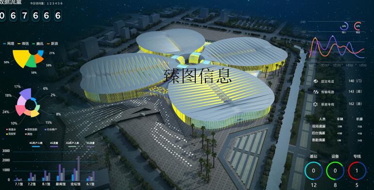 针对论坛馆和新闻馆的4G、5G用户数据和流量数据进行大屏展现。并可以在3D场馆模型中进行体现。