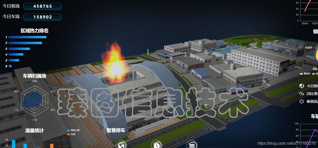6)街区全景沙盘:全景沙盘可直观看到街区全景园区可视化地图,并基于地图即时掌握空间经营、企业分布的概要运行情况。